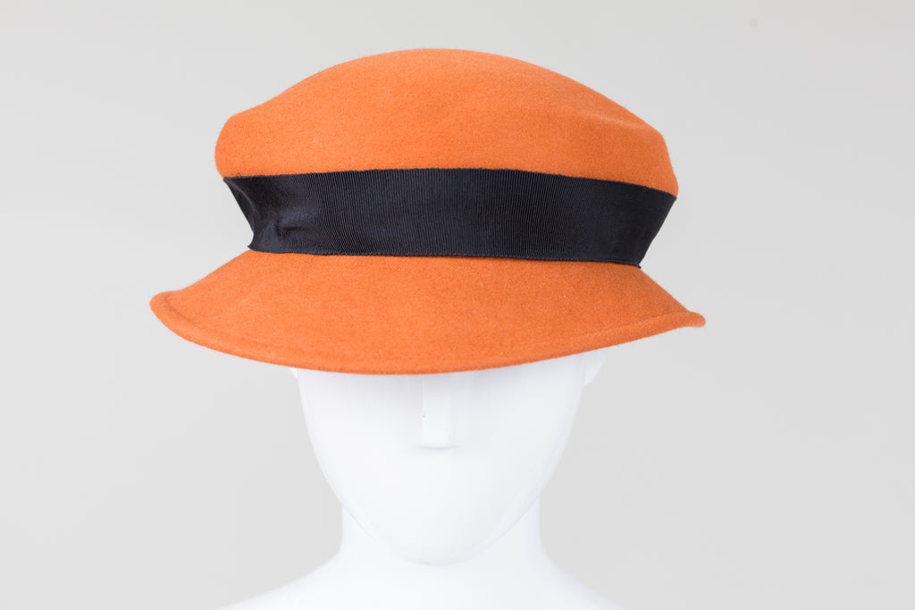 Brettons Vintage Short brim felt hat. Pumpkin with Black Ribbon