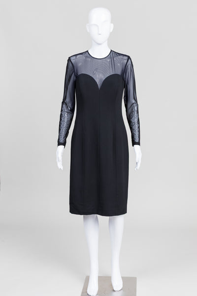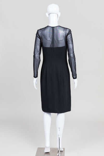Escada Couture Black Long Sleeve Cocktail Dress w/ Sheer Bodice & Sleeves (40)
