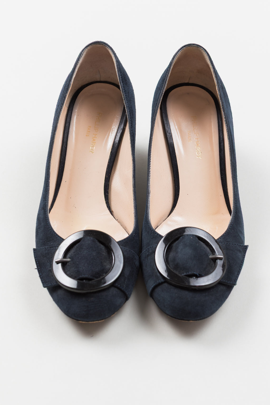 PHILLIP HARDY Paris dark navy suede block heel (38.5)