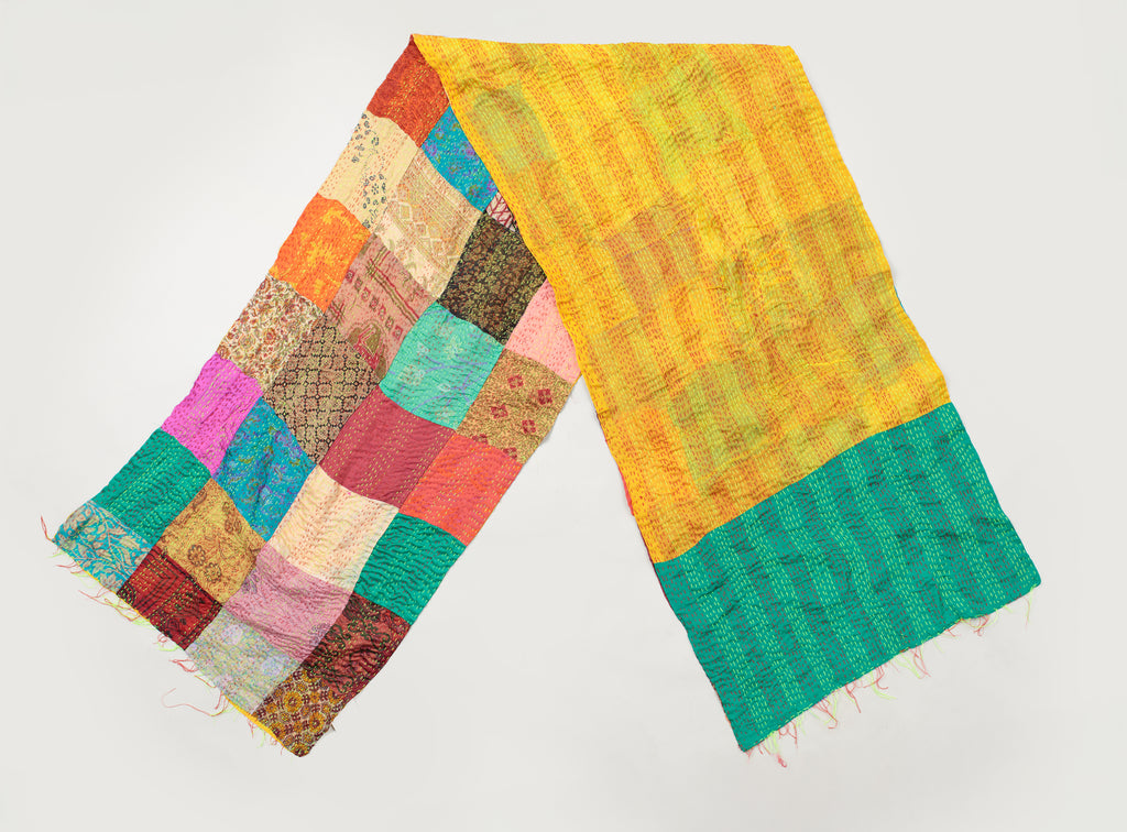 Vintage hand-stitched silk multicolored scarf w/ original tag