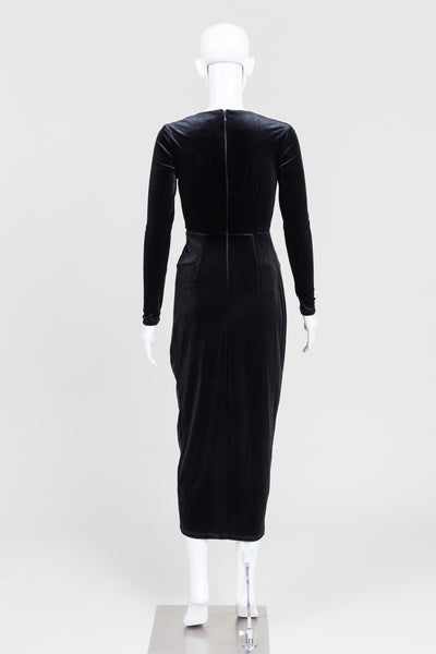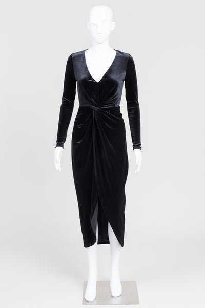Ever New Black Velour Long Sleeve Plunge V-Neck Fitted Dress (2)