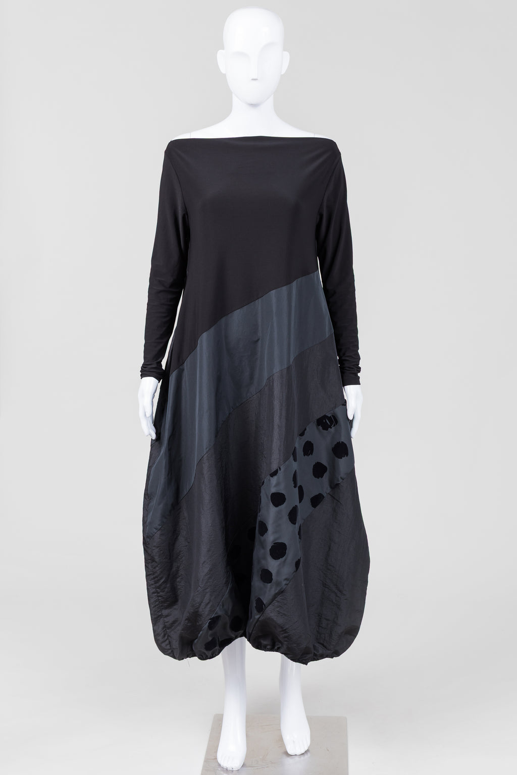 Igor Black Midi Dress w/ Taffeta Pieced Dotted Bubble Skirt (S) *New w/ tags $489