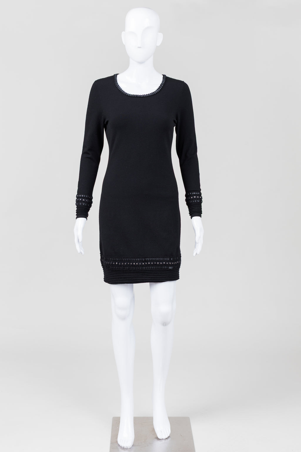 Rena Lange Black Knit Dress w/ Ribbon & Stud Details (S)