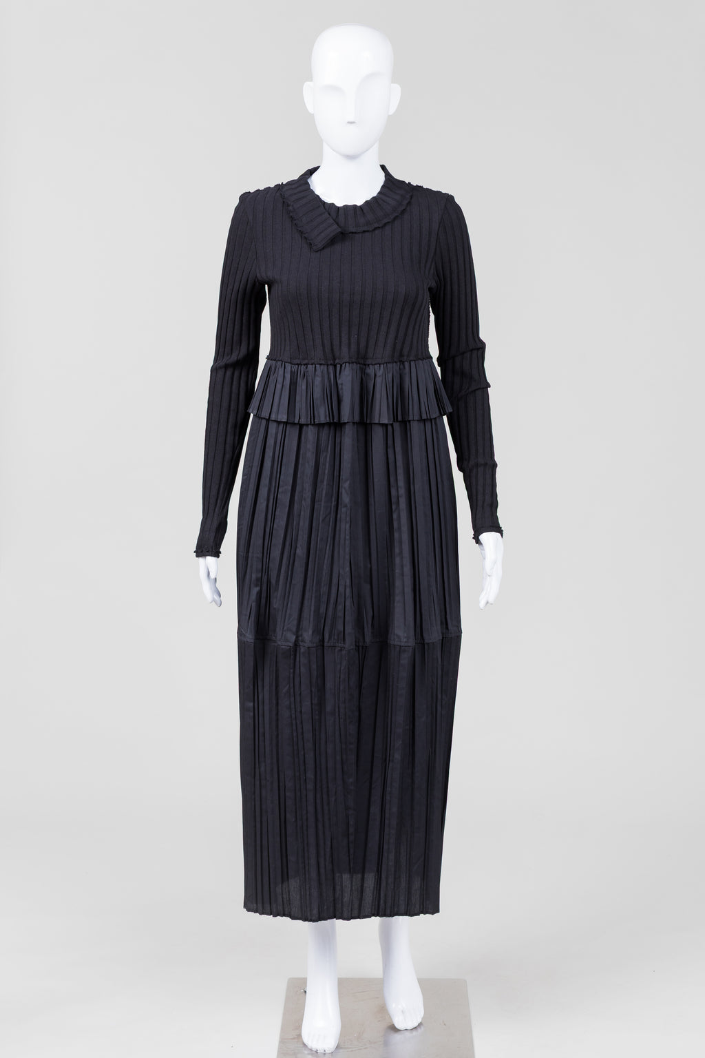 Kedziorek Black Rib Midi Dress w/ Pleated Skirt (36 & 40 available) *New w/ tags $439