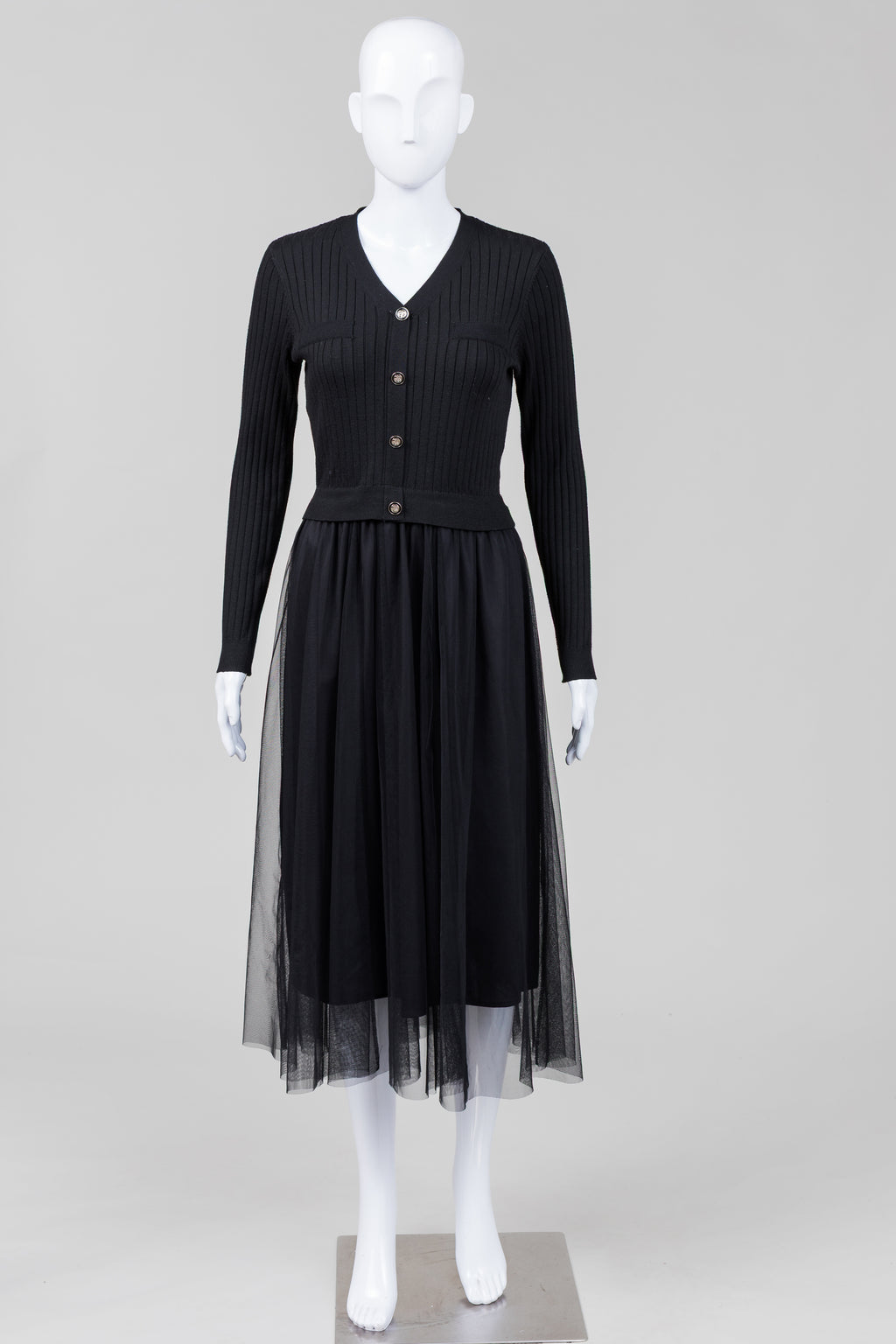 Maison de Roem Black Ribbed Cardigan w/ Crinoline Dress (M)