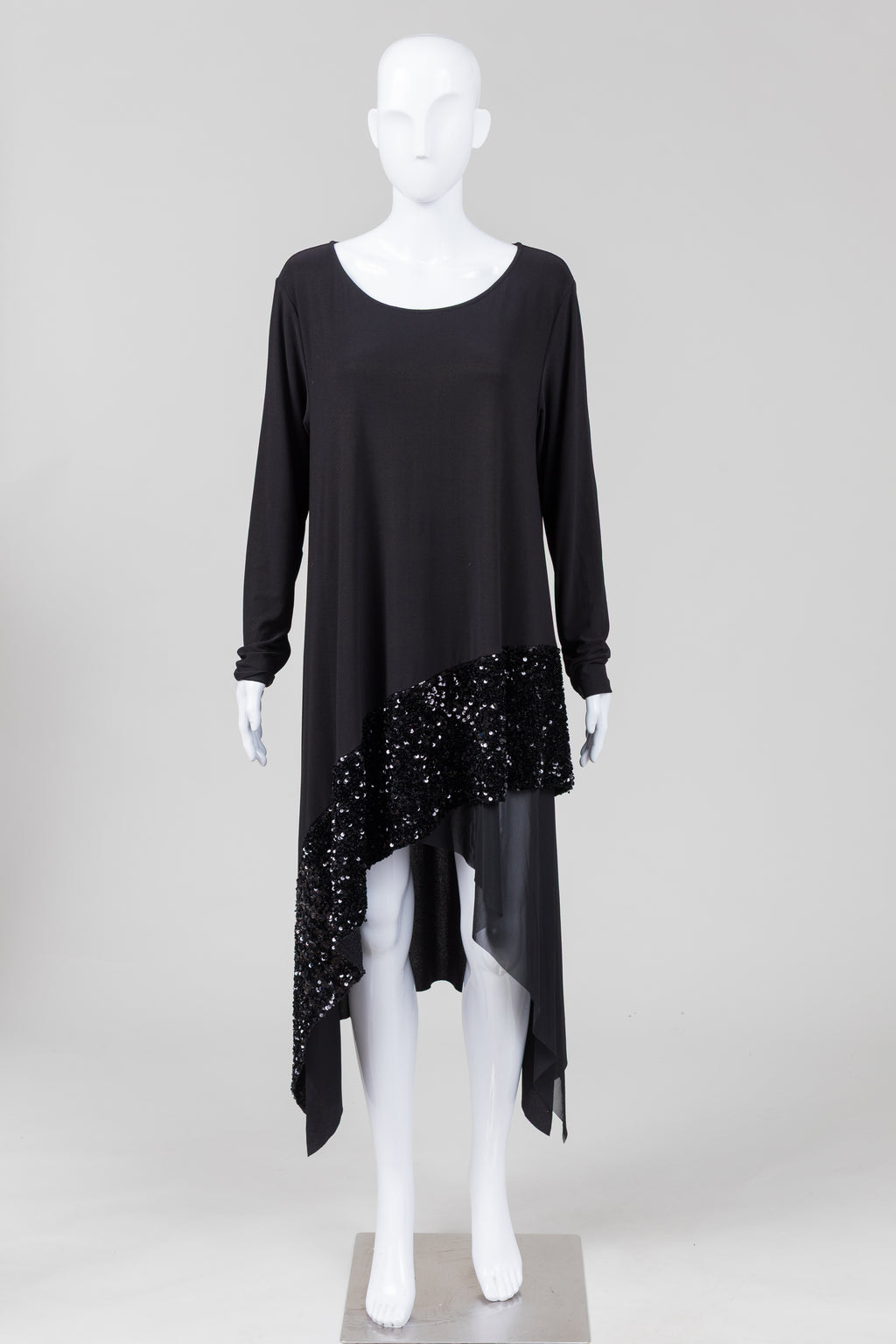 Igor black with black sequence embellished a-symetrical hem dress (L) *New with tags $440)