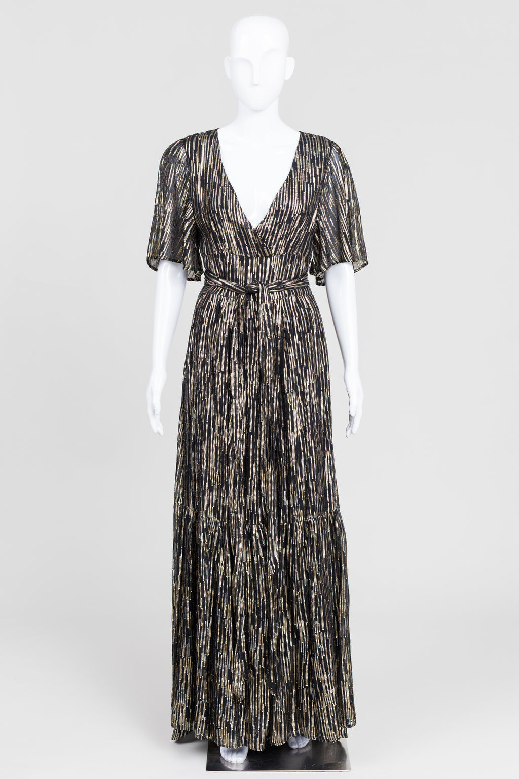 ba&sh Black/Gold Lurex Mock Wrap Evening Dress w/ Cape Sleeves (0)