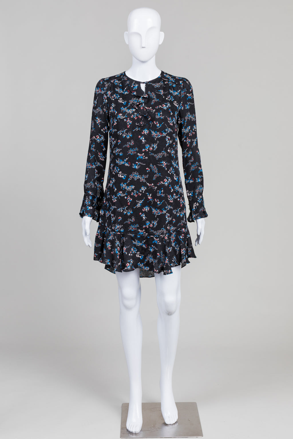 Veronica Beard Black Silk Jacquard Print Dress W/ Flounces