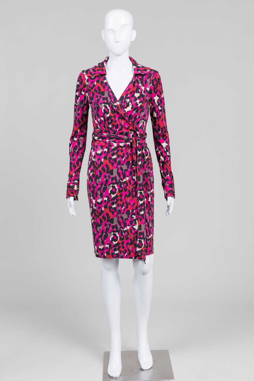 Diane von Furstenberg Fuschia Animal Print Silk Jersey Wrap Dress (8)