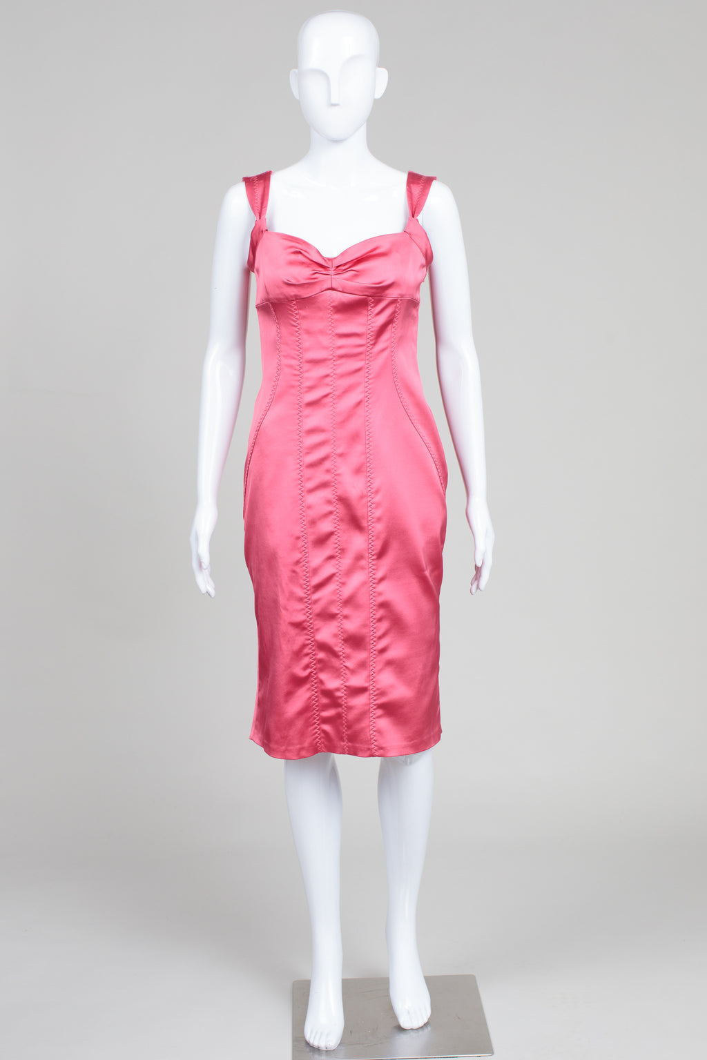 Karen Millen Lipstick Pink Satin Stretch Knit Fitted Cocktail Dress (8) *some tiny marks