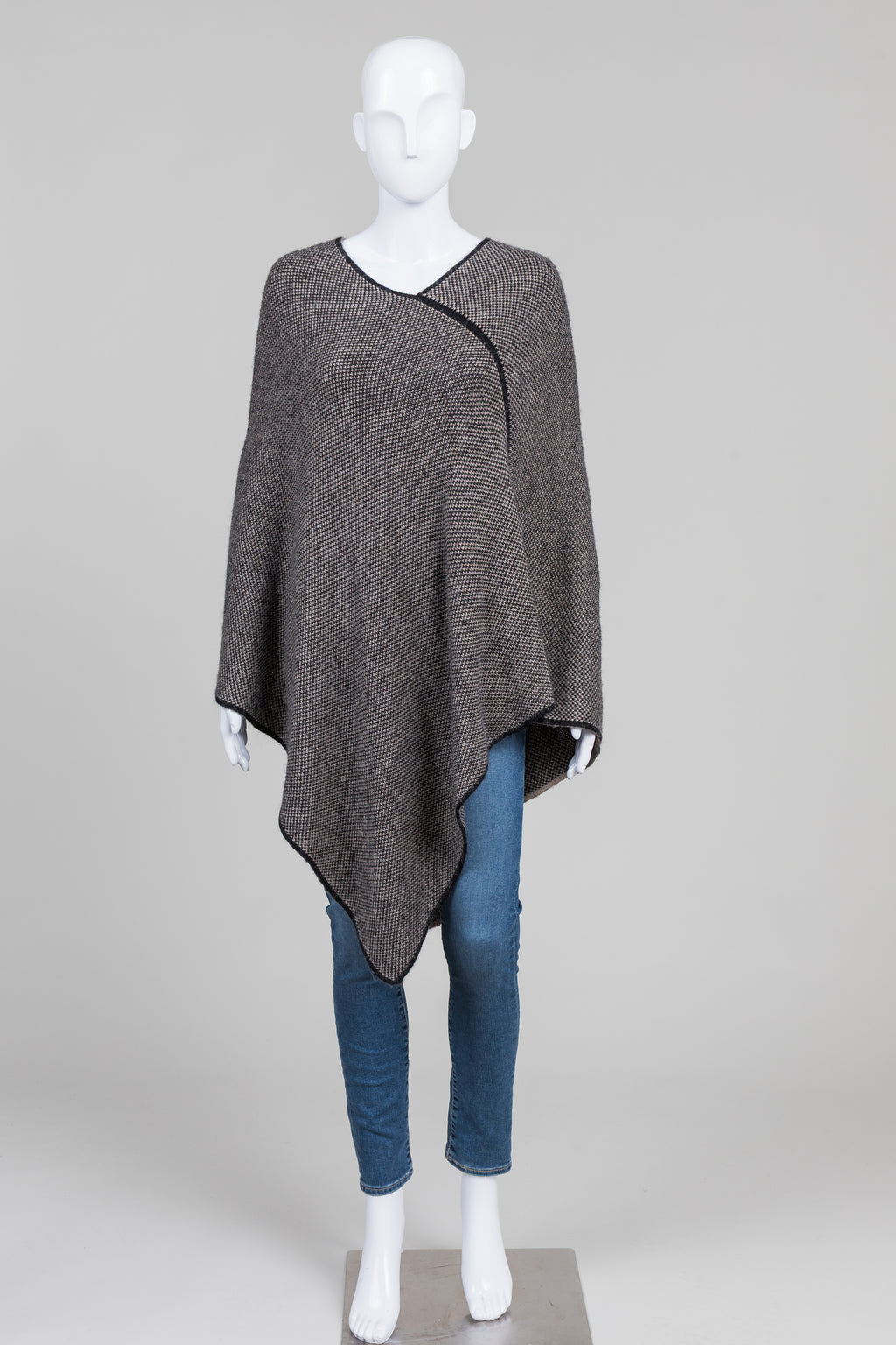 Fratelli Talli Black/Taupe Knit Birdseye Poncho w/Asymetrical Seam