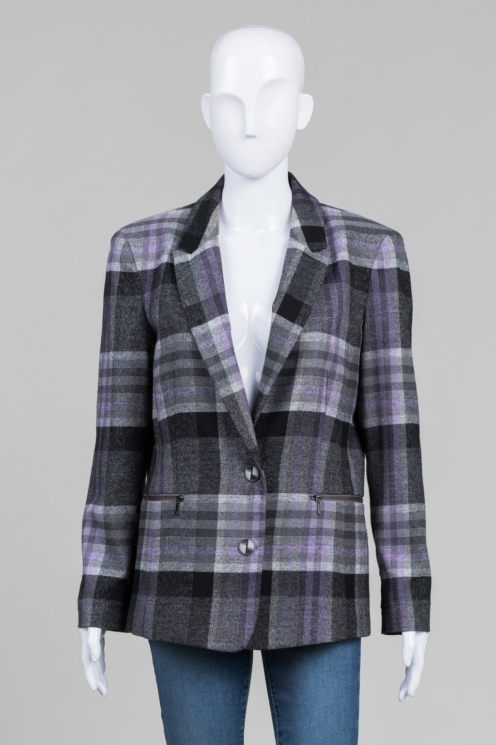 Tahari Black/Grey/Purple Plaid Blazer (12)