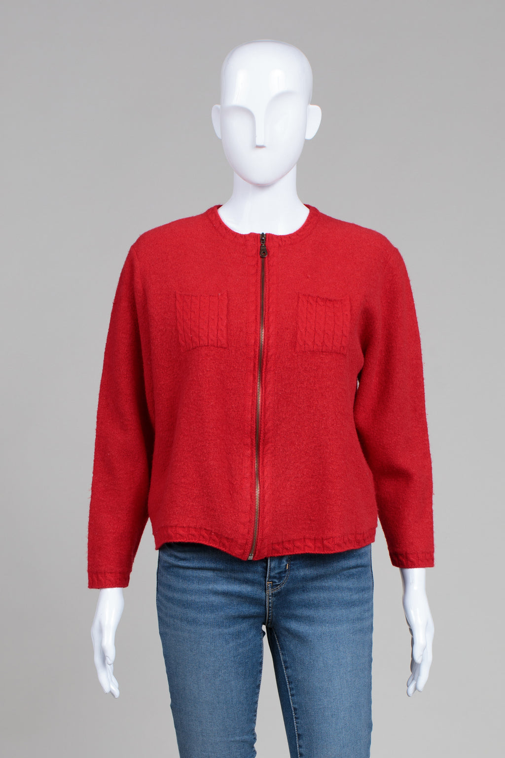 Nils Vintage Red Boiled Wool Zip Cardigan
