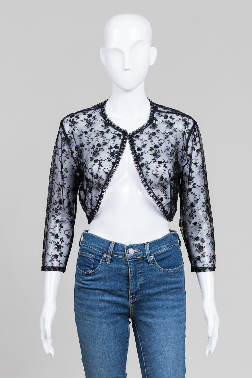 Precis Petite Vintage Black Velvet Jacket w/ Lace Trim (10)