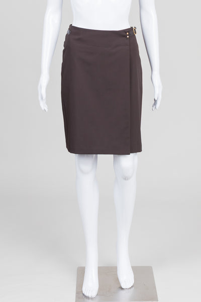 BCBGMaxAzria brown, knee length wrap skirt with leather closures (0)