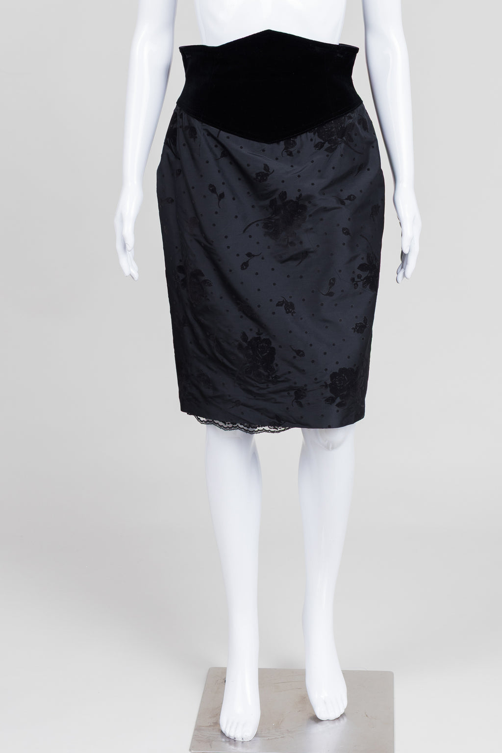 Escada Vintage Black Velvet Embossed Pencil Skirt (38)