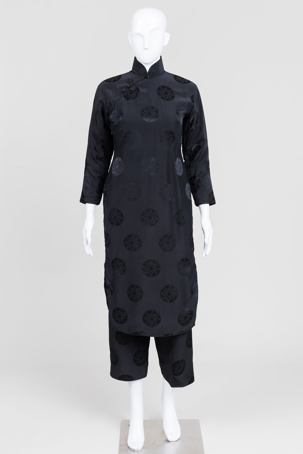 Custom Made Black Silk Padded Qipao Dress & Pant Set