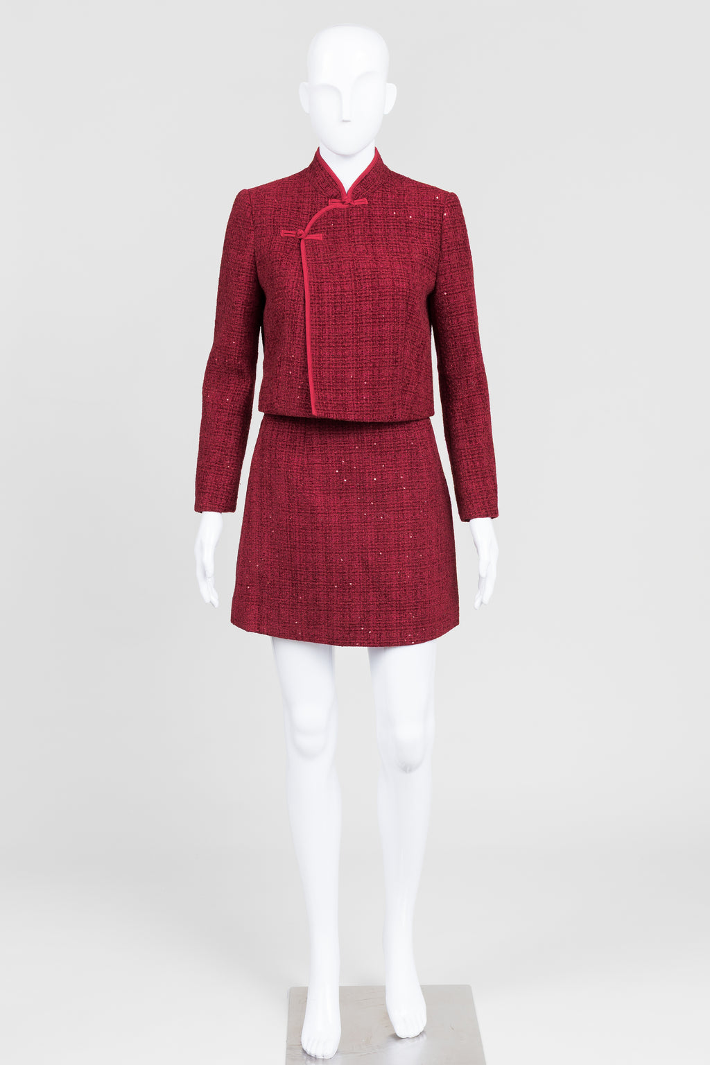 Goelia Wine Tweed w/Sequin Skirt Suit (XS) *New w/ tags