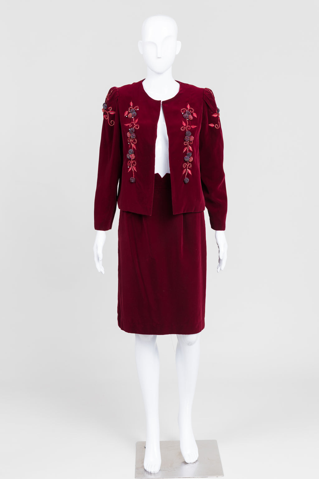 Agehara Wine Velvet Skirt Suit w/ Beading & Embroidery (2)