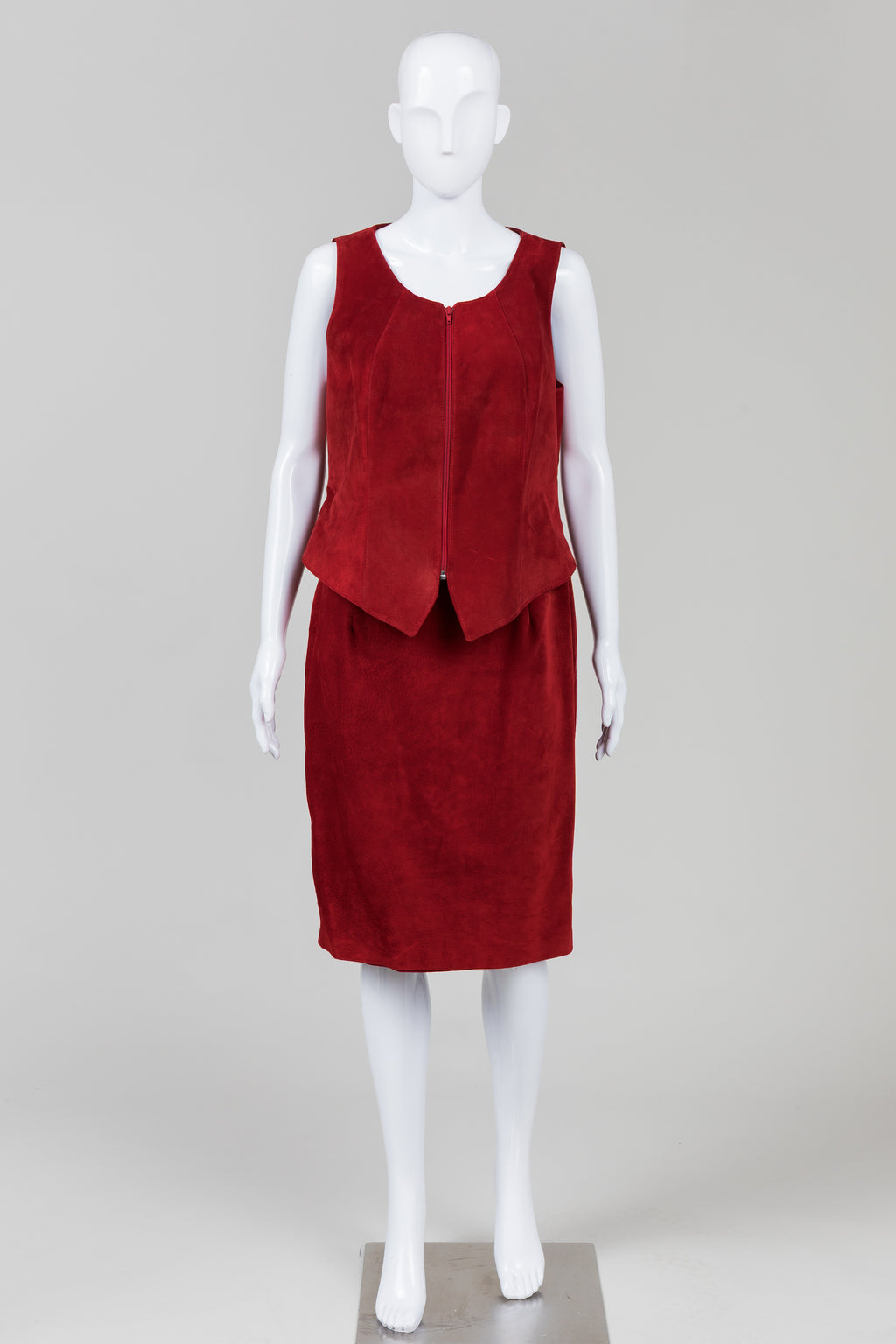 DANIER Vintage Suede scarlet zip front vest (L) & skirt (12) *new with tags $135