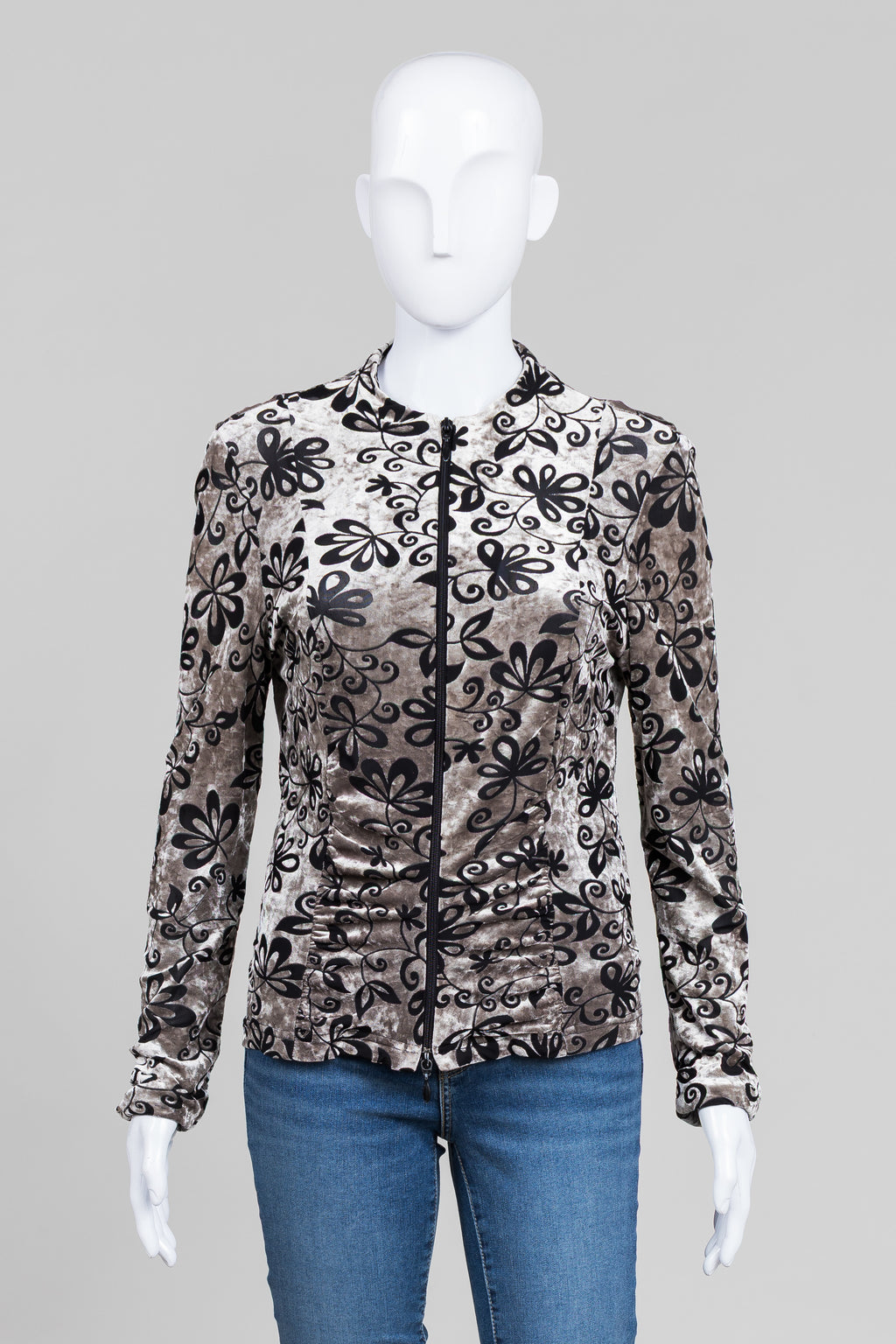 Joseph Ribkoff Taupe/Black Burnout Zip Front Top (12)