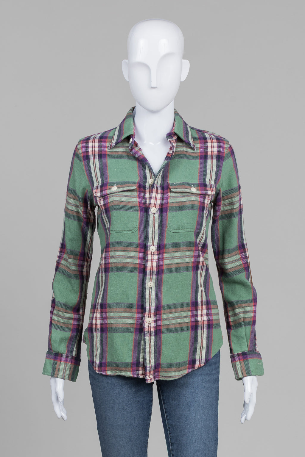 Polo Ralph Lauren green & multicolour plaid shirt w/ brown elbow patches (XS)