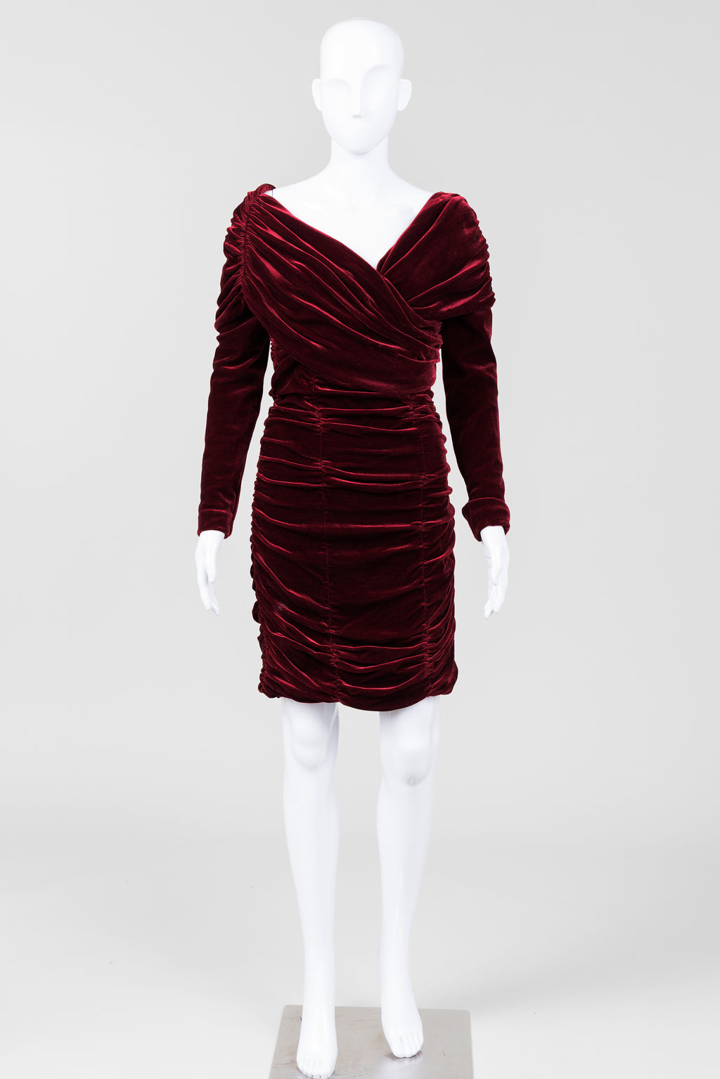Jiki Monte Carlo Vintage Wine Velvet Ruched Dress (42)