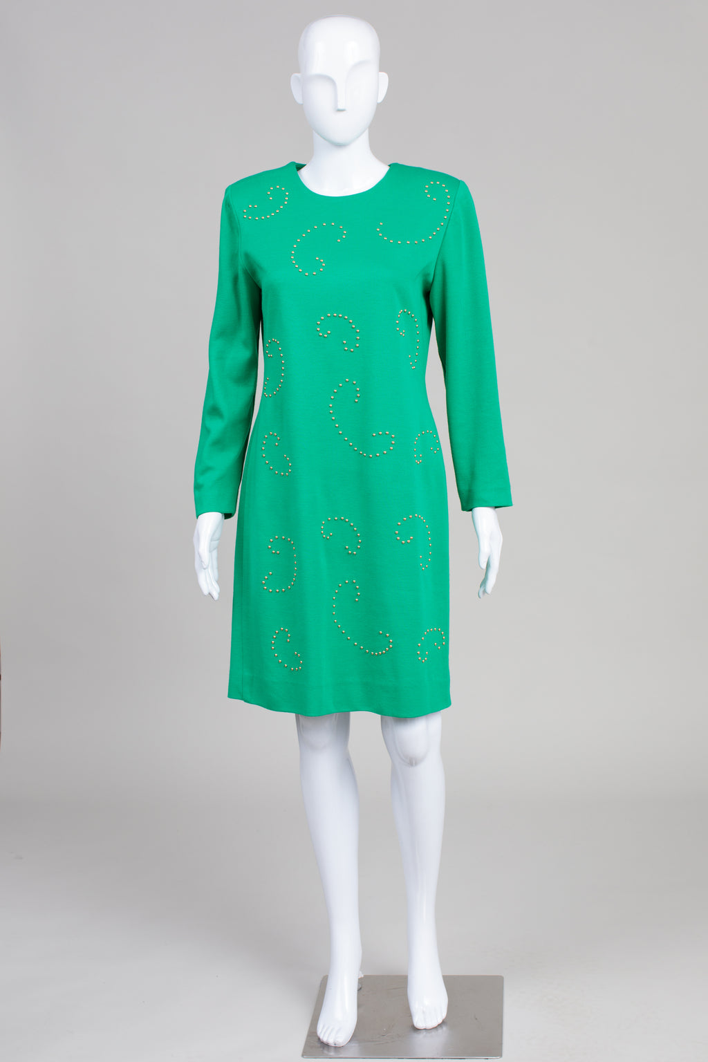 Leslie Fay Vintage Bright Green Long Sleeve Dress w/ Gold Studs (10)