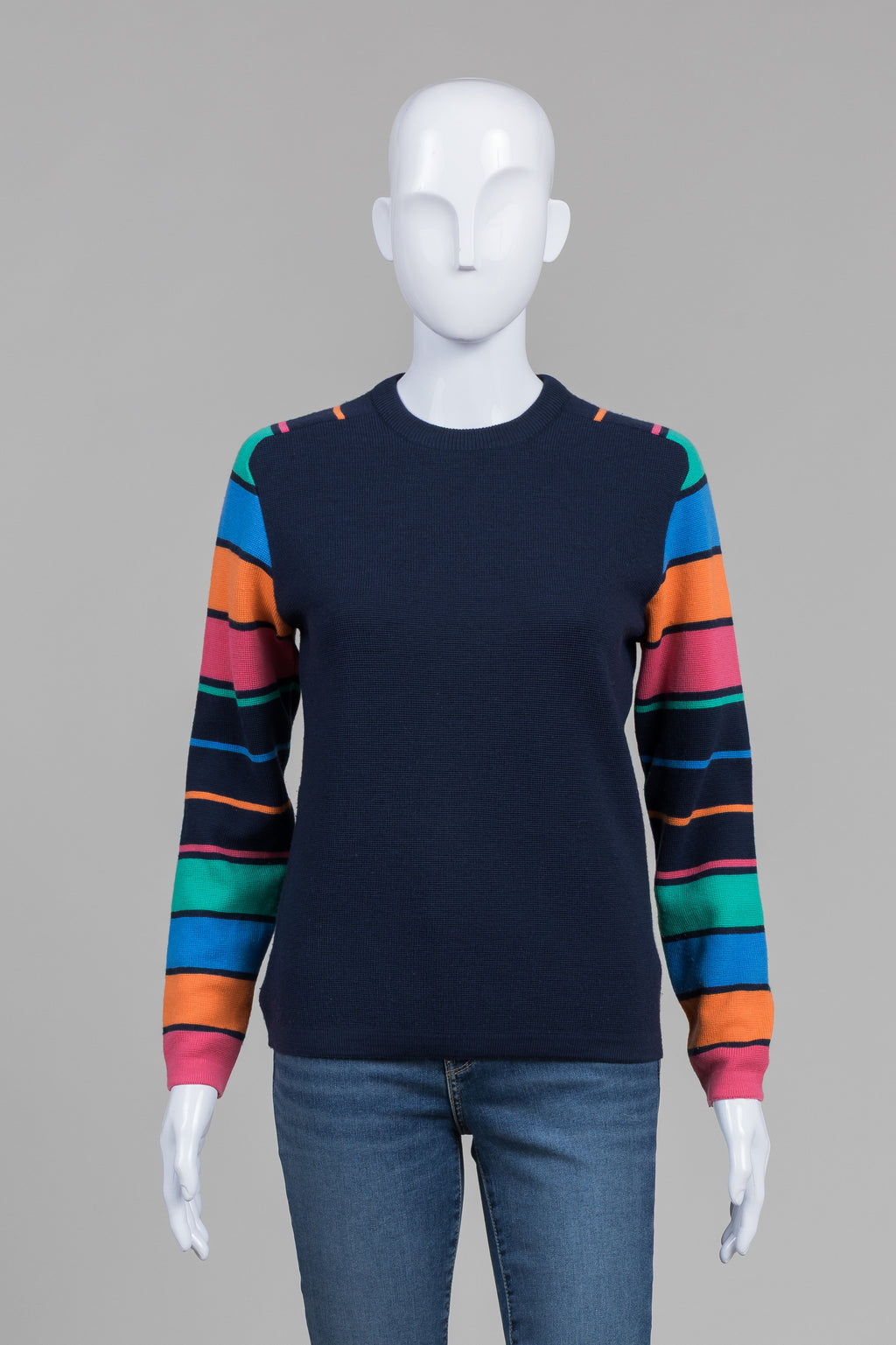 Head Vintage Navy Ski Sweater w/ Striped Sleeves (M)